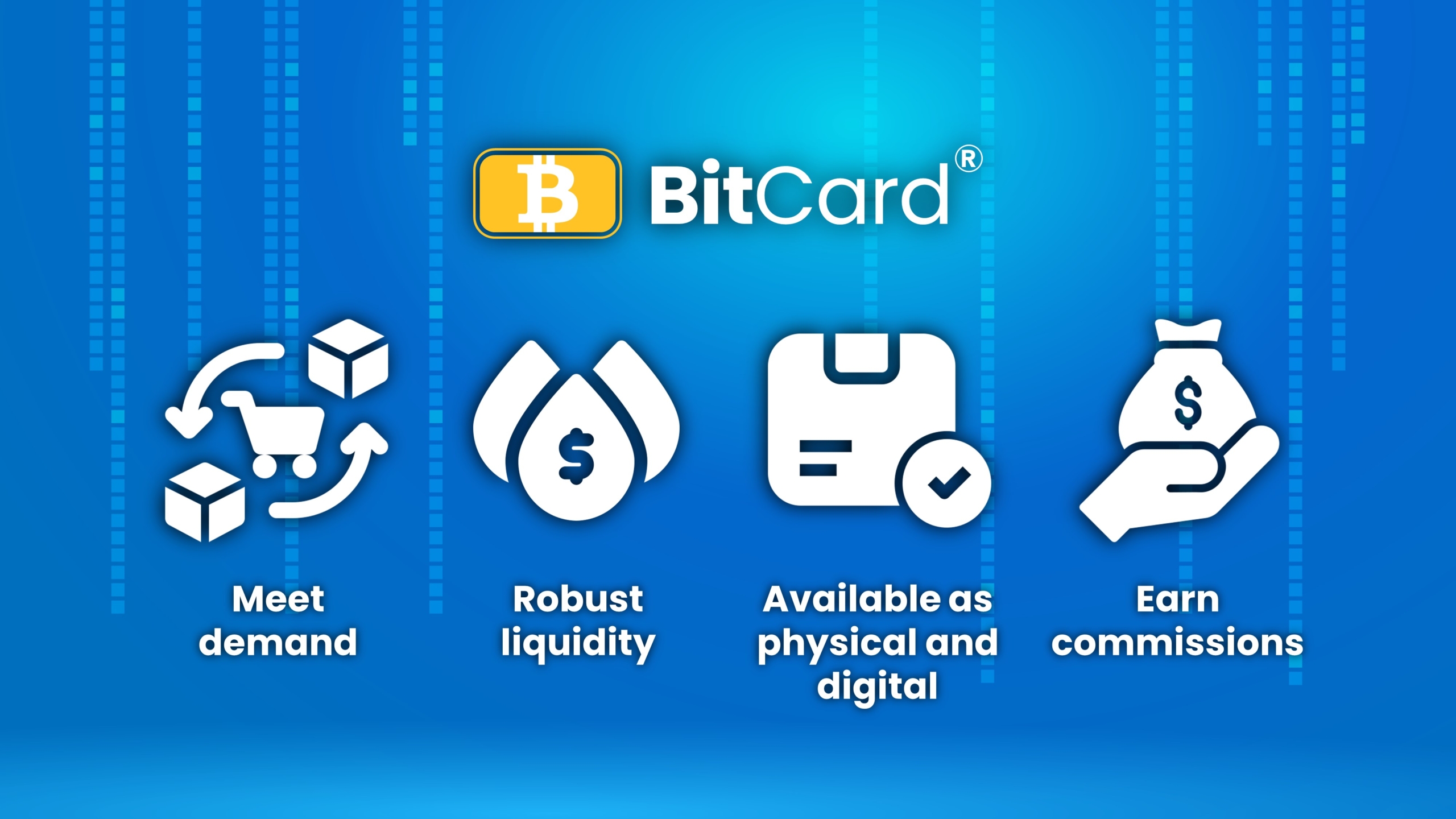 Consumers can buy BitCards® online and soon in-store via well-loved big brand names. Businesses are able to purchase in bulk via a range of distributors around the globe.
