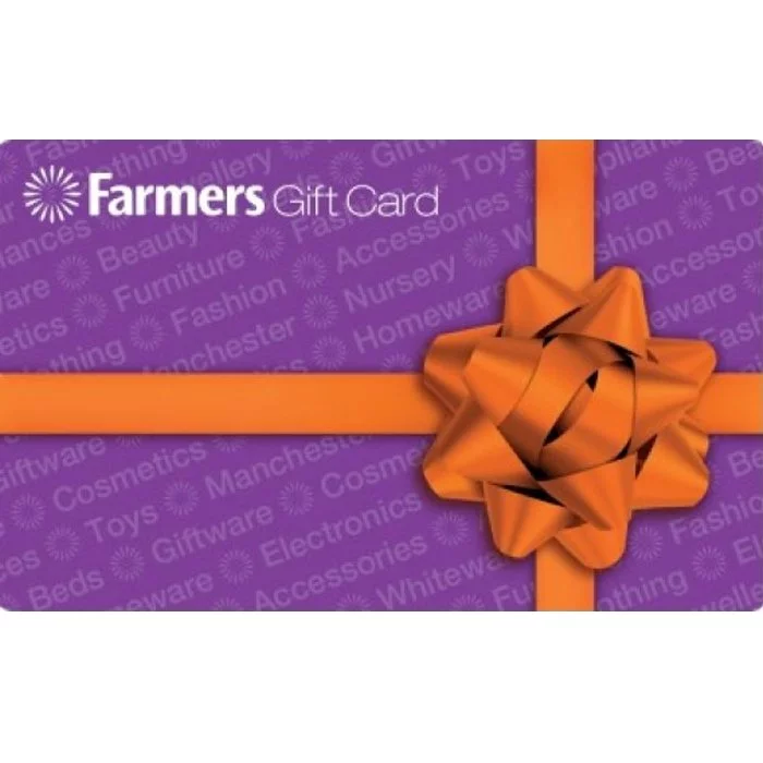 - This Farmers Physical Gift Cards can be used for the purchase of goods and services at any physical Farmers store (please note Farmers Gift Cards can not be redeemed via the online store) with the exception of counters operated by third parties.